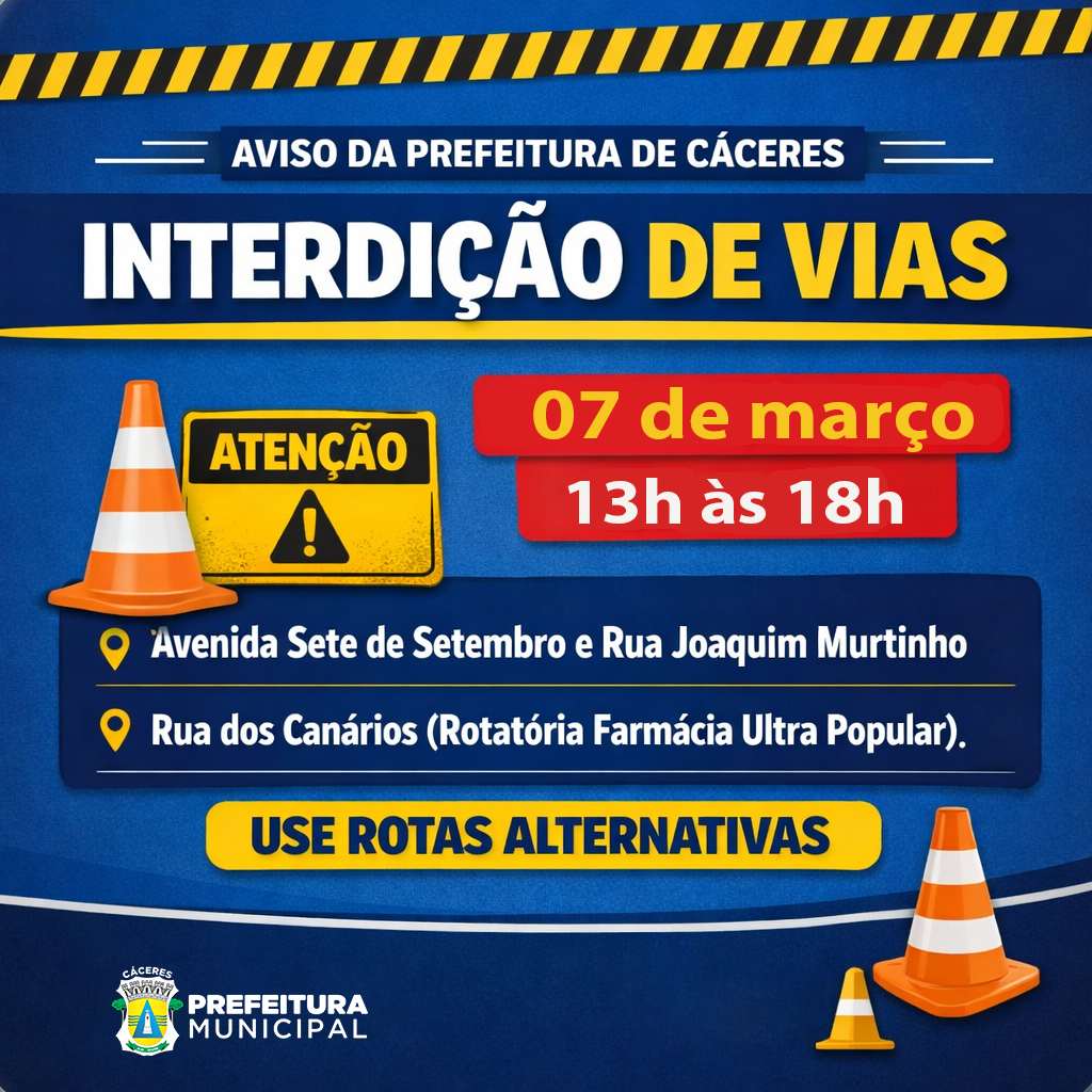 A Prefeitura de Cáceres, por meio da Coordenadoria Municipal de Trânsito, informa…
