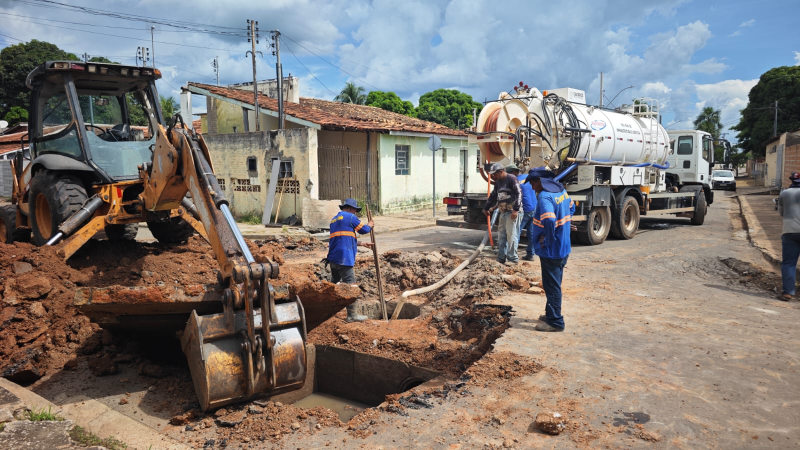 Prefeitura realiza limpeza de galerias pluviais na rua dos Operários para prevenir alagamentos em Cáceres