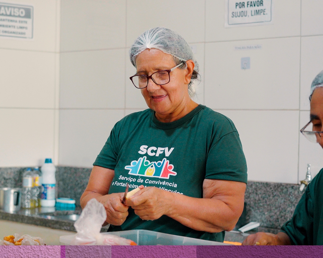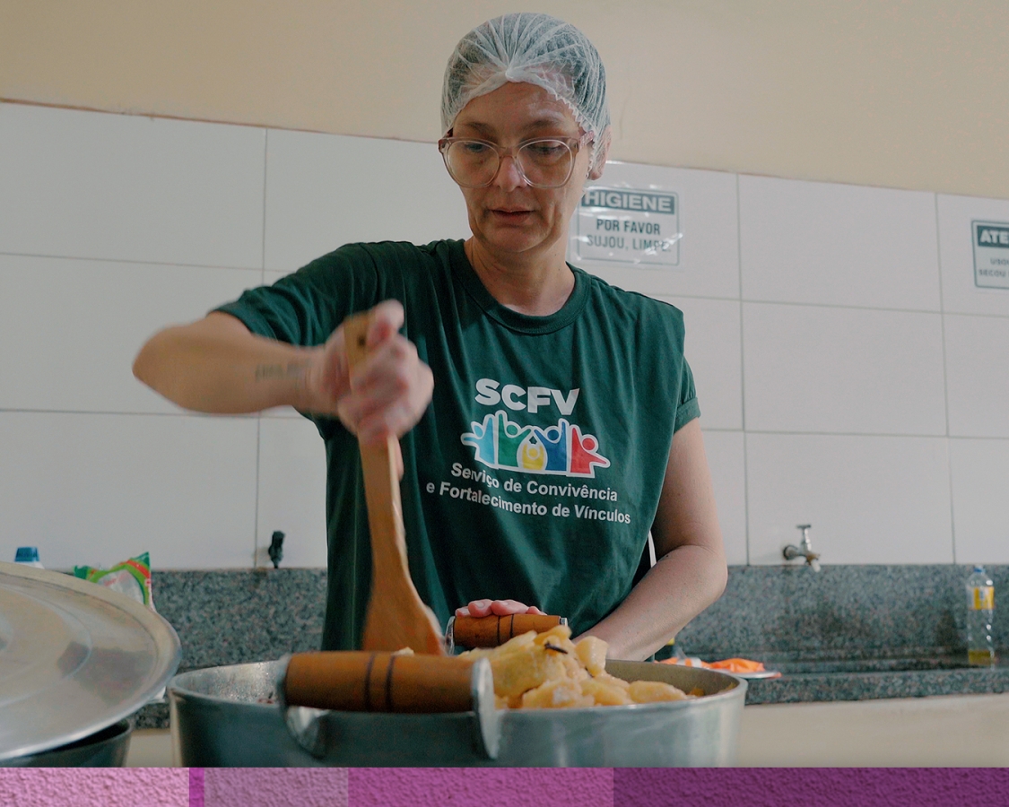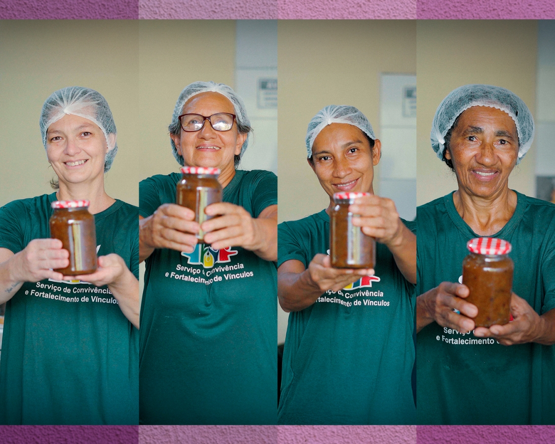 A aposentada Nadir Terezinha Borges, de 64 anos, participa das atividades e conta que o reaproveitamento de alimentos trouxe alívio para o orçamento da casa. “Levar alimento pra casa ajuda muito a diminuir os gastos. Hoje a gente faz molho de tomate, doce de banana, doce de maçã. E o principal tempero que a gente coloca em tudo é o amor”, relata.