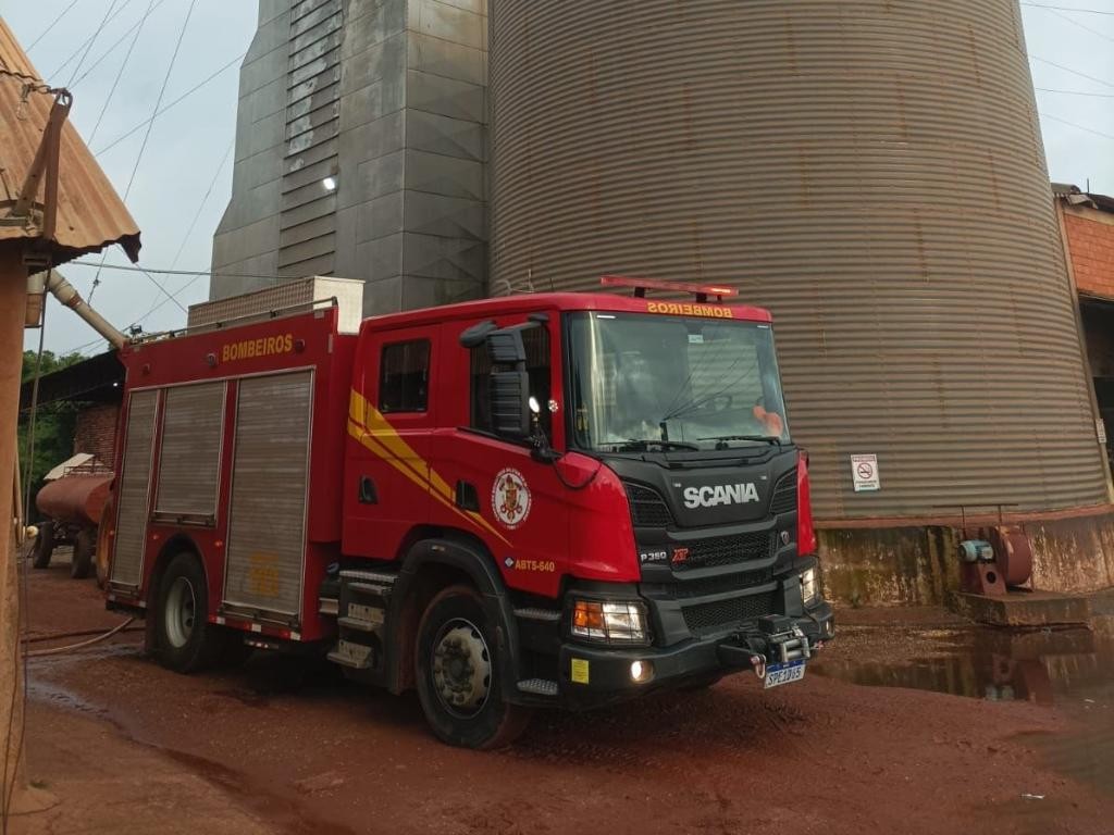 Corpo de Bombeiros atua por oito horas para conter incêndio em secador de grãos